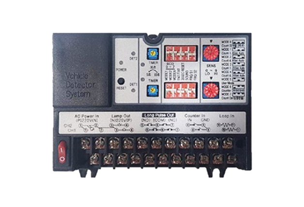 ループコイルと組合わせて作動し、周波数変化により車両の進入を判断し、各種駐車管制機器に車両進出入に関する車両検知情報を提供する機器。